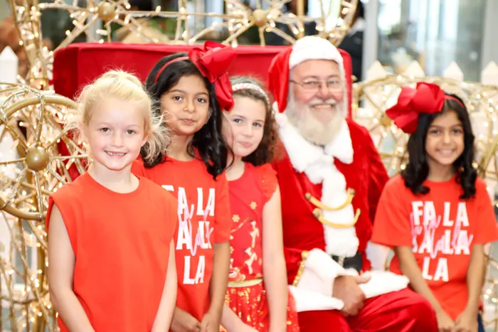 Pictured with Santa Claus (Colin du Plessis) are, from left, Harley Engelbrecht, Avalon Dewolf, Maddison Delport and Harper Dewolf.