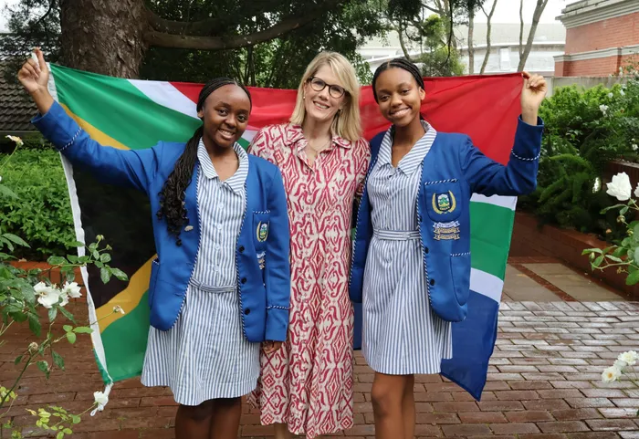 Nqobile Makhanya and Azwile Ngubo, with Mrs Kirsten